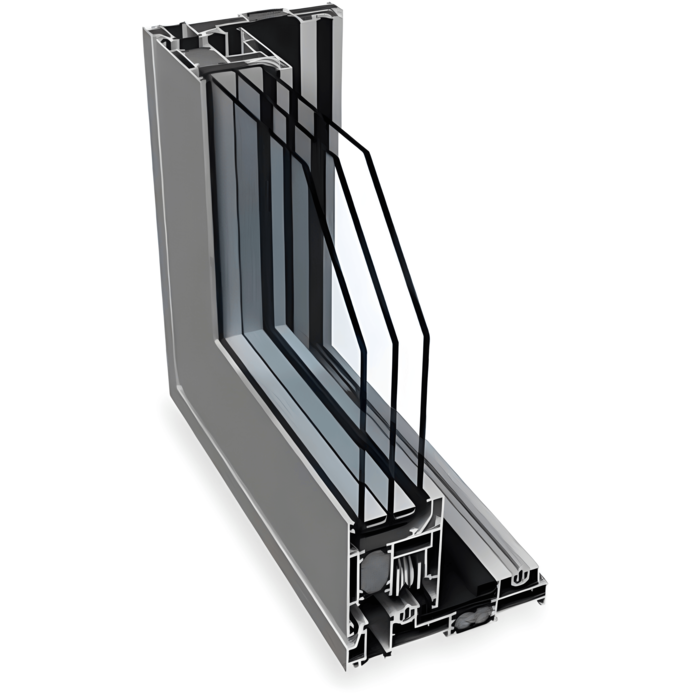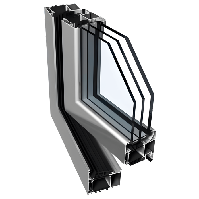 I profili presentano una struttura a tre camere, con una profondità costruttiva di 70 mm per il telaio e 79 mm per l'anta delle finestre.